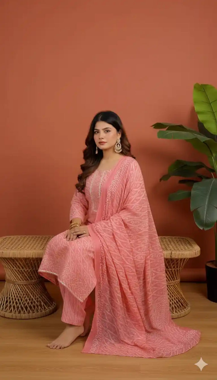 Readymade Block Print Cotton Suit With Cotton Dupatta