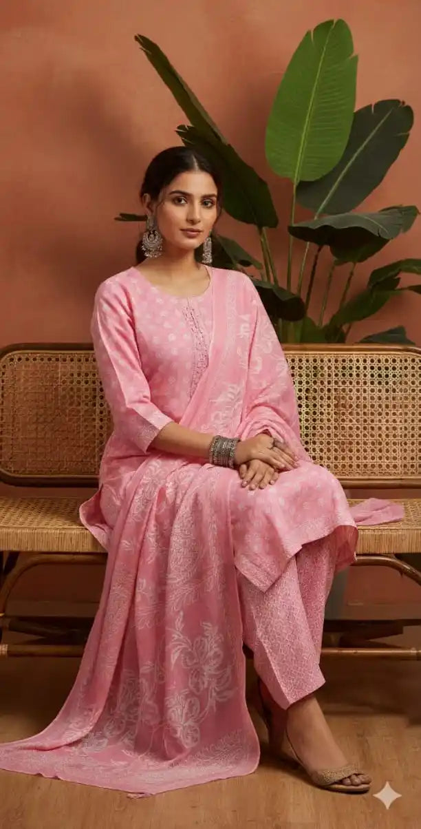 Neck - Round With Embroidery (Front & Back Printed ) Sleeves length - 18 approx Straight cut with slits length upto 43 approx 🔰Bottom -Pant with elastic length - 40 inches APPROX 🔰Dupatta - cotton print Dupatta -2.20m approx-