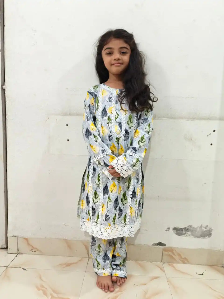 Crochet Lace Karachi Styled Cotton Cord Sets for Girls Kidz Wear