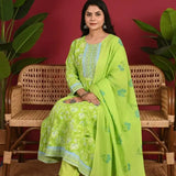 Frock With Neck Yoke Dabu Patch, Floral Print With Cotton Pant & Mal Dupatta