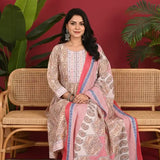Frock With Neck Yoke Dabu Patch, Floral Print With Cotton Pant & Mal Dupatta