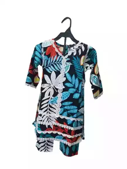 Girls Kids Karachi Lace Rayon Kurta Pant Straight Cut Cord-Sets