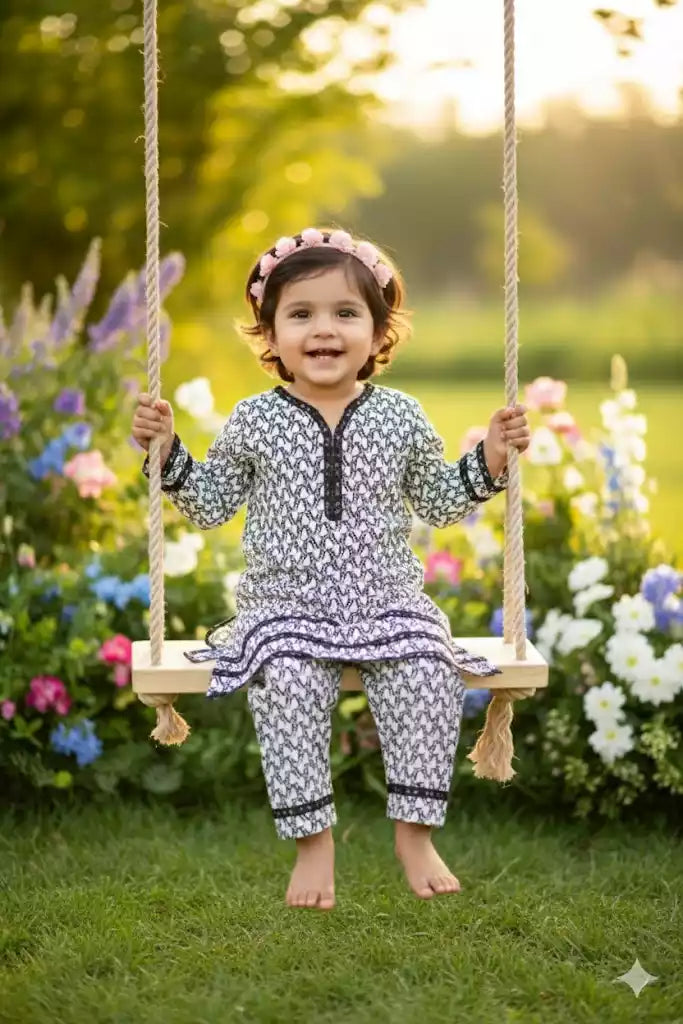 Girls Kids Karachi Lace Rayon Kurta Pant Straight Cut Cord-Sets