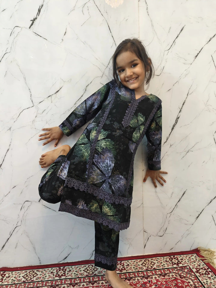 Girls Kids Karachi Lace Rayon Kurta Pant Straight Cut Cord-Sets