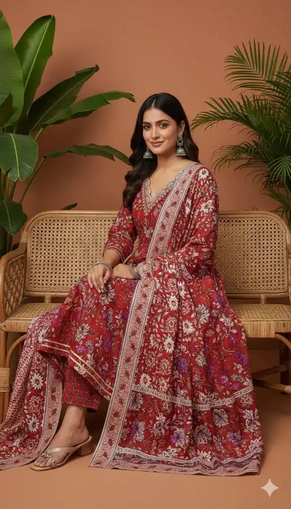 Gown With Kali In Premium Cotton Fabric, Cotton Pant , Mal Cotton Print Dupatta