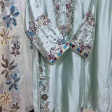 Top - Sartin with beautiful handwork on neck sleeves and u type daman cutwork embroidery