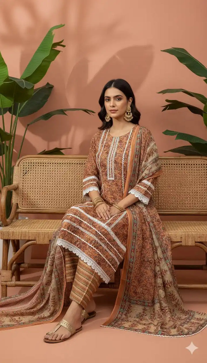 Karachi Pattern Cotton Premium Readymade Suit, Cotton Pant, Mal Dupatta