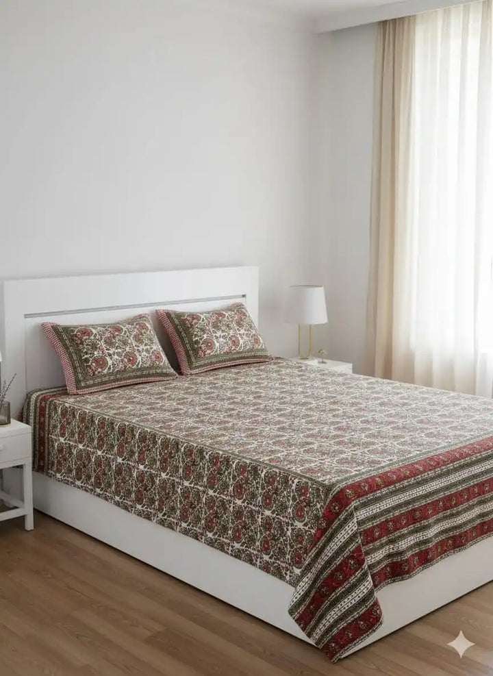 King Size 8ft x 9ft Jaipuri Cotton Bedsheet with 2 Pillow Covers