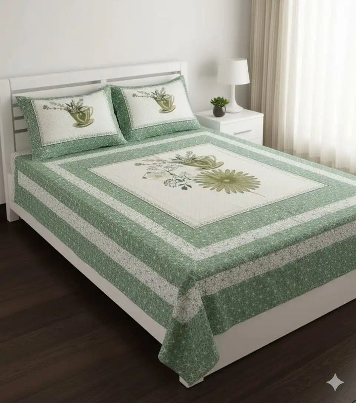 King Size 8ft x 9ft Jaipuri Cotton Bedsheet with 2 Pillow Covers