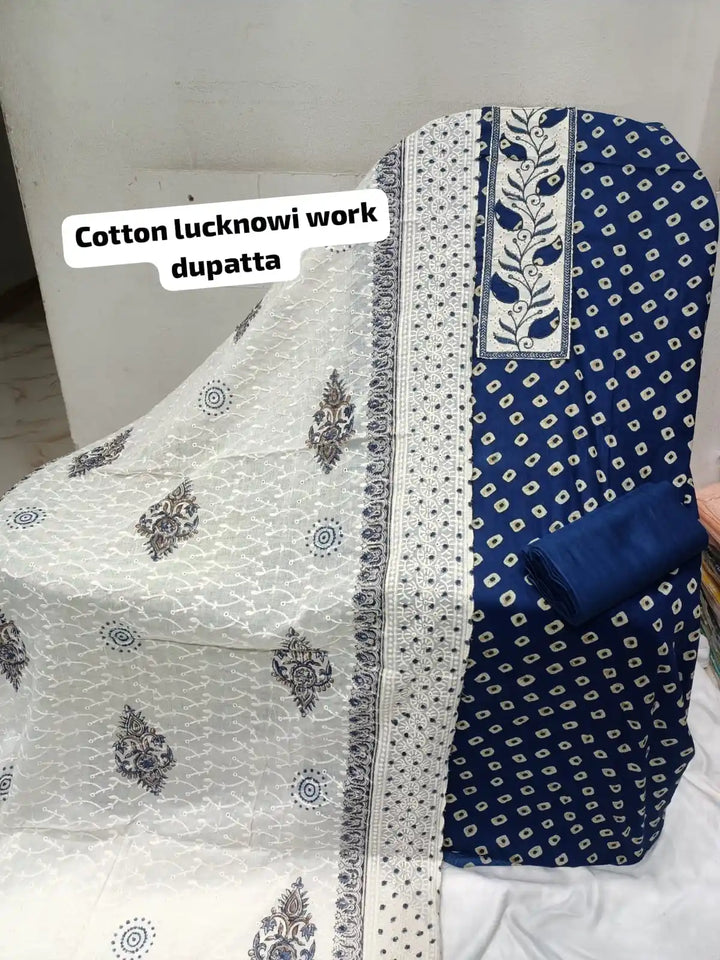 Top - Pure soft premium cotton unstitched Jaipuri print with neck embroidery 2.40m approx.