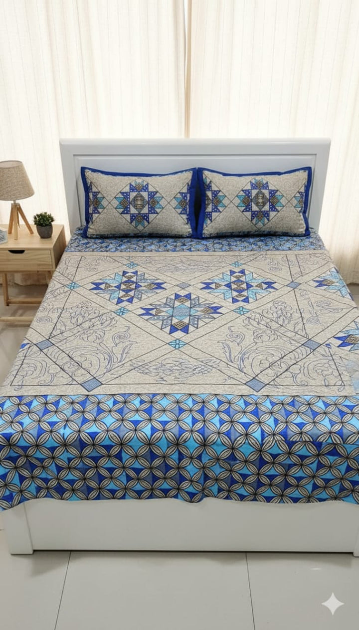 Queen Size 7ft*8.5ft Sanganeri Bedsheet With 2 Pillow Covers