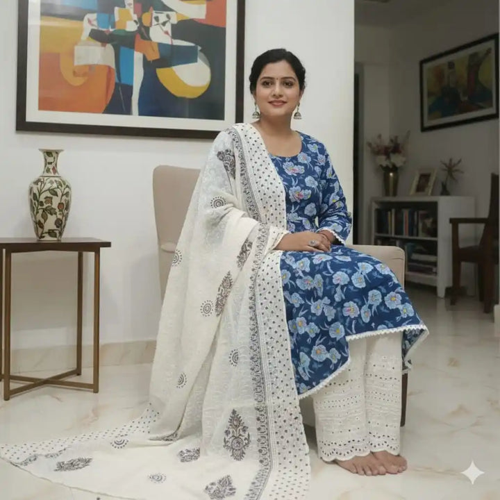 READYMADE ANARKALI WITH FLAIR, CHIKENKARI DUPATTA COTTON, CHIKENKARI BOTTOM PLAZO PANT