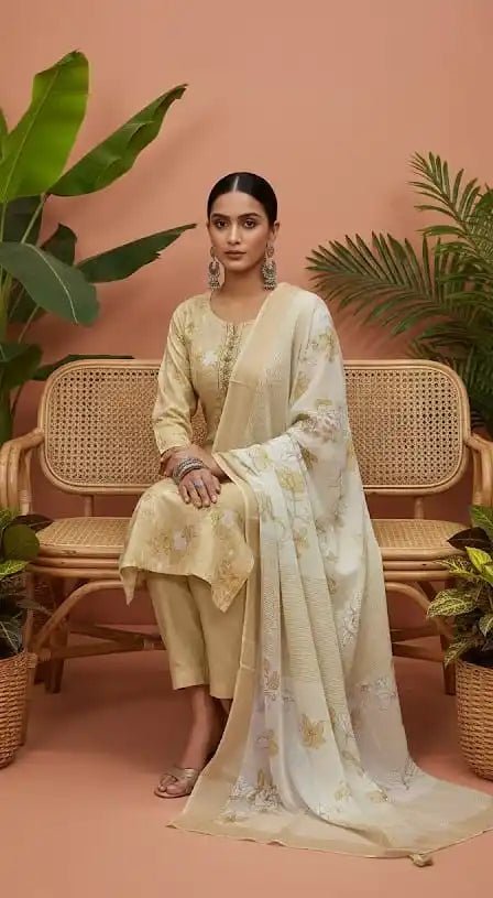 Neck - Round With Embroidery (Front & Back Printed ) Sleeves length - 18 approx Straight cut with slits length upto 43 approx 🔰Bottom -Pant with elastic length - 40 inches APPROX 🔰Dupatta - cotton print Dupatta -2.20m approx