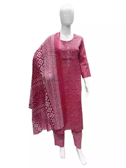 Readymade Block Print Cotton Suit With Cotton Dupatta