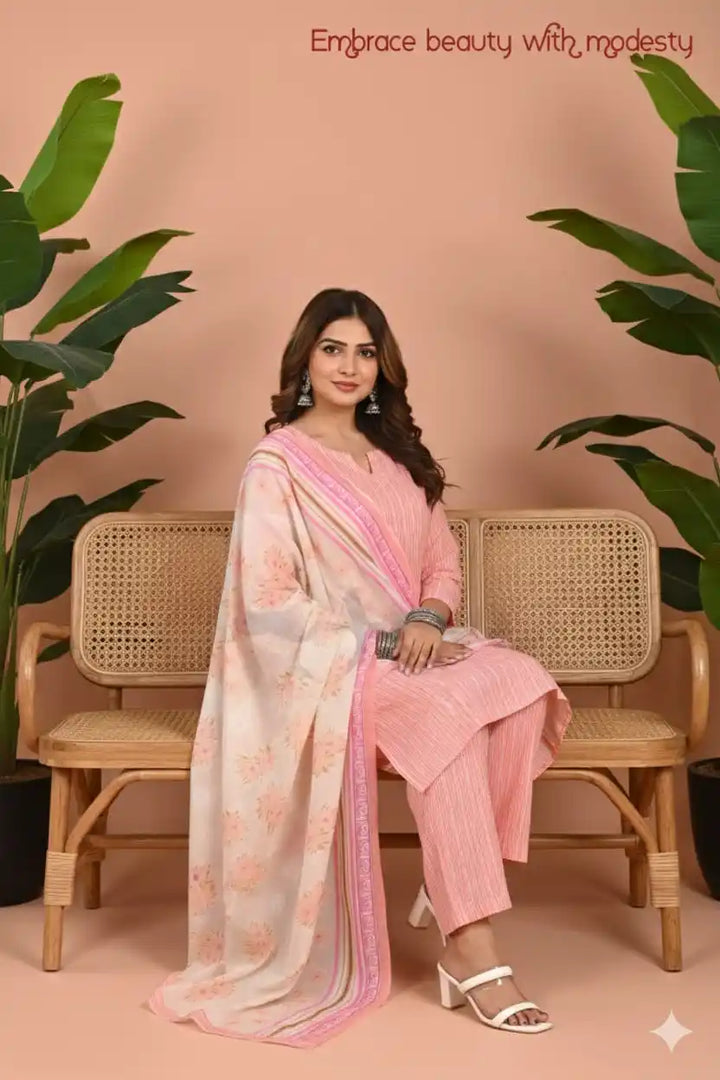 Neck - Round With Embroidery (Front & Back Printed ) Sleeves length - 18 approx Straight cut with slits length upto 43 approx 🔰Bottom -Pant with elastic length - 40 inches APPROX 🔰Dupatta - cotton print Dupatta -2.20m approx