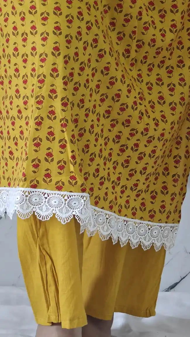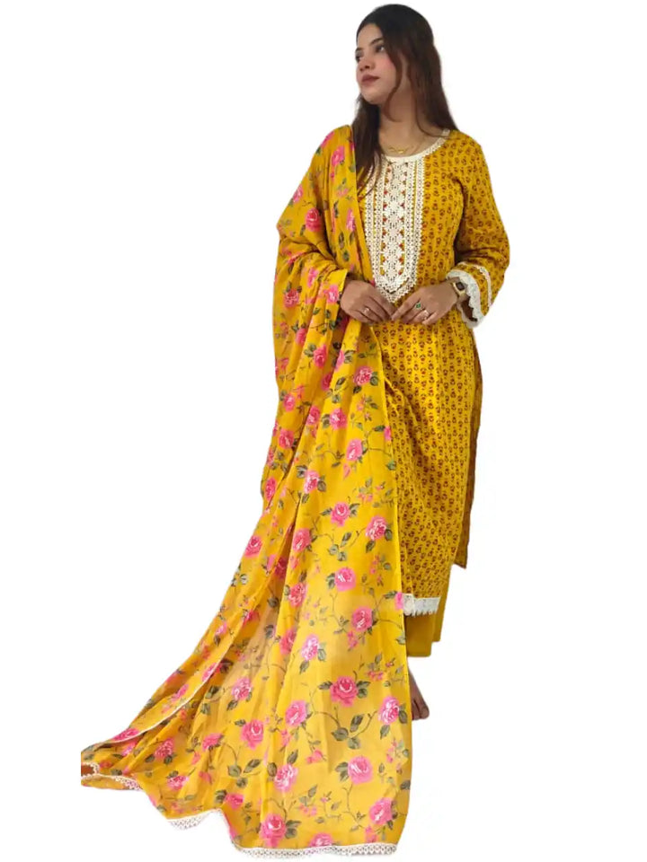 Readymade Block Print Cotton Suit With Cotton Dupatta