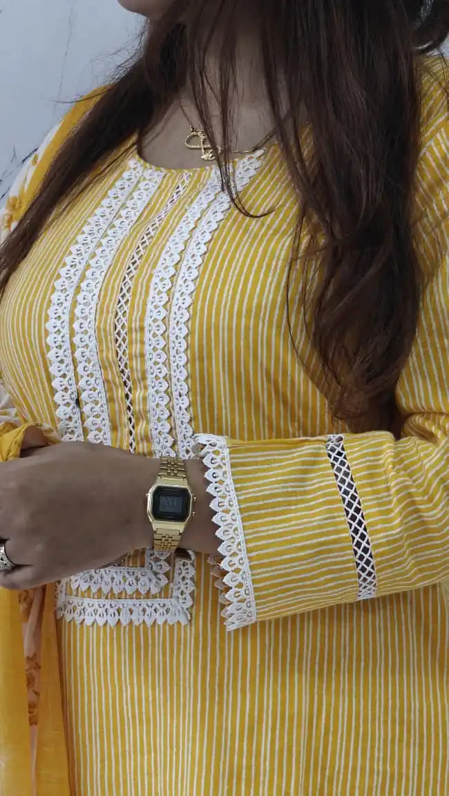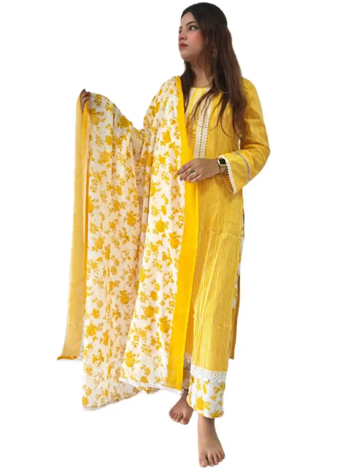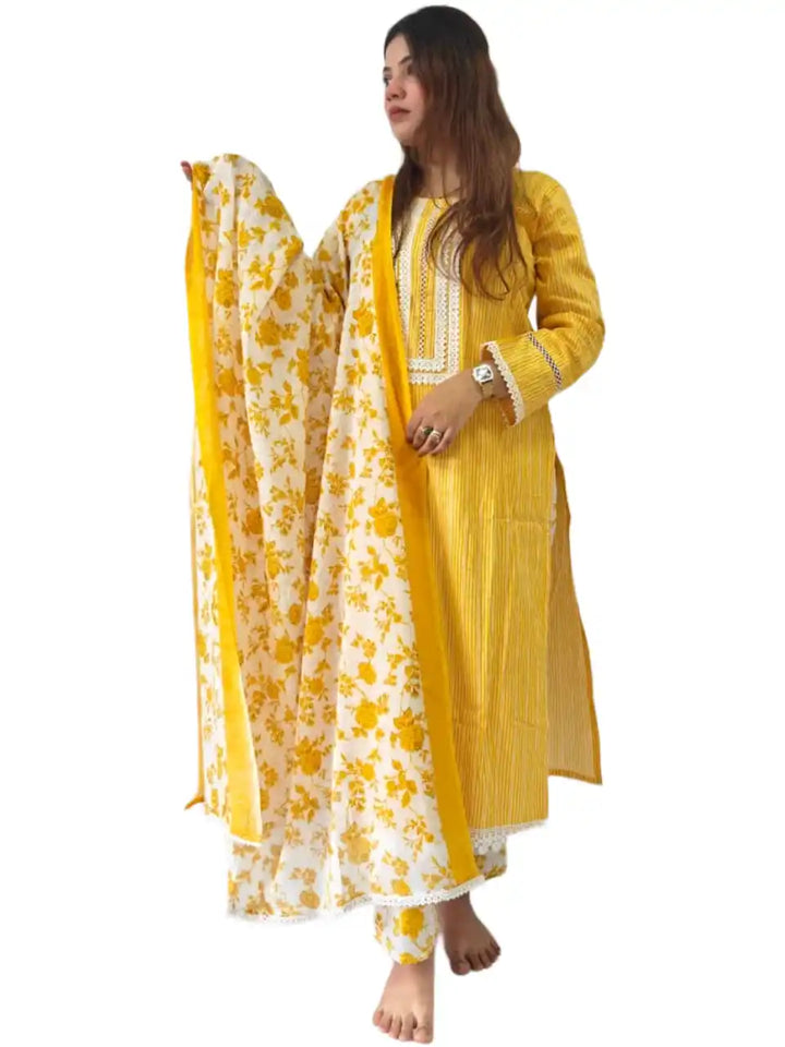Readymade Block Print Cotton Suit With Cotton Dupatta