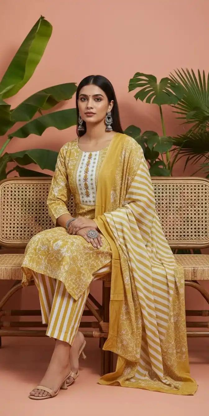 Readymade Block Print Cotton Suit With Mal Cotton Dupatta