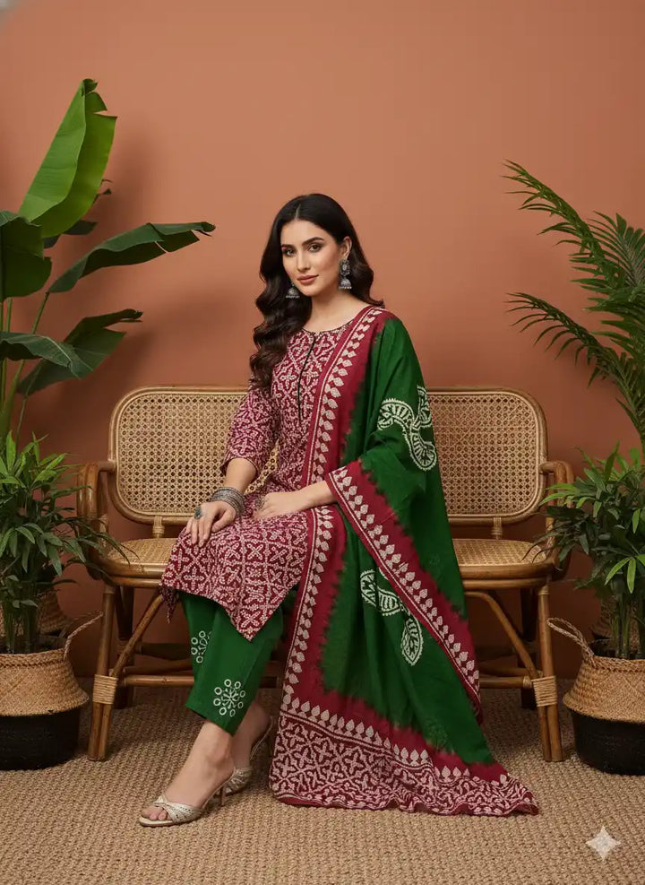 READYMADE COTTON BATIC SUIT, Cotton Batic Salwar, Mal Cotton Dual Tone Color Dupata