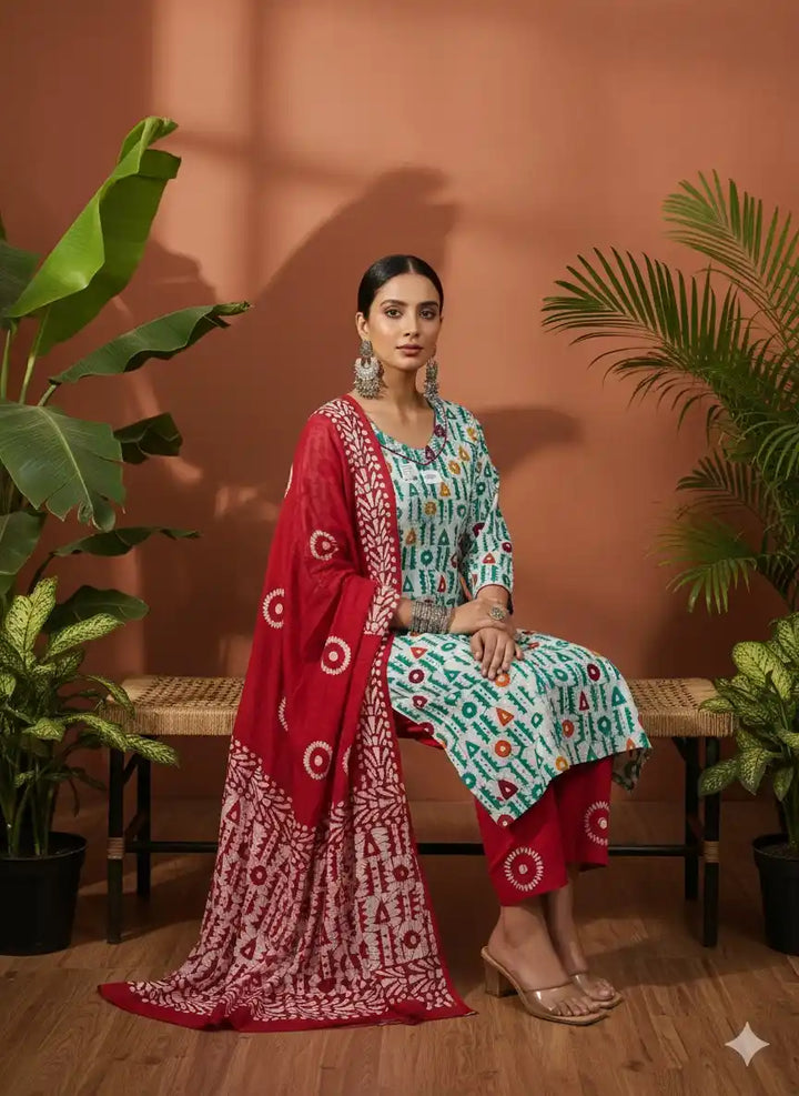 READYMADE COTTON BATIC SUIT, Cotton Batic Pant, Mal Cotton Dual Tone Color Dupata