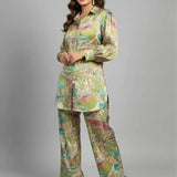 Crepe Modest Pakistani Cord Sets With Baloon Sleeves